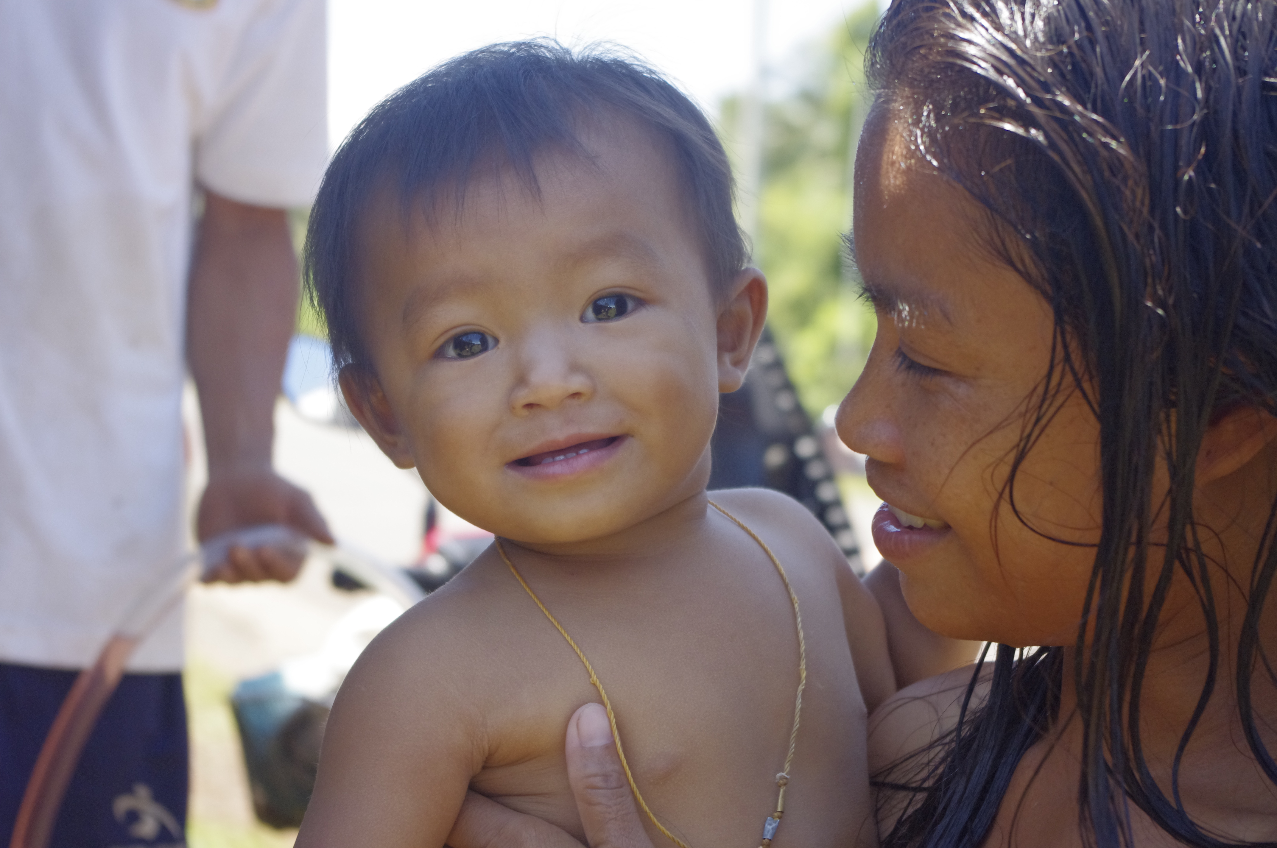Hannah et Maceo sont très regardés, et nous, on admire les enfants des autres… ils sont très beaux, souriants, venant vers nous. Beaucoup de femmes sont enceintes ou avec de petits bébés en écharpe.