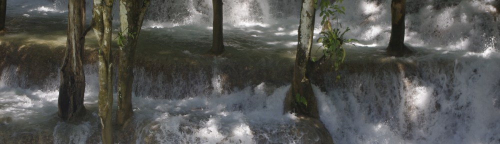 Et pour finir le dernier jour, un petit tour (en mini-bus organisé cette fois, 50000 kips par personne, les enfants ne payant pas) pour aller voir les chutes de Kouhang Si à une trentaine de kms de Luang Pradang… le chauffeur est odieux, on est obligé de suivre les horaires précisés et on se fera même klaxonner parce qu’on regardera les souvenirs au lieu de monter dans le bus à 15h tapantes (sauf que nous, on s’est mis au rythme lao et on n’a plus de montre…). A part cela, les chutes sont époustouflantes, il faut aller jusqu’en haut pour voir la grande cascade d’une hauteur de 30/40 mètres environ ! Tout au long de la descente, il y a 6 ou 7 bassins différents dans lesquels on peut se baigner ; on choisit celui qui a une liane pour se jeter à l’eau et on se jette à l’eau. Hannah n’essaye pas la liane et préfère se baigner dans le bassin. Maceo, en revanche, fait le singe et se jette de l’arbre sans difficultés… Quant à Fabrice et à moi, on y arrive mais avec moins de légèreté que notre fils ! Fabrice plonge tout de même de la cascade après avoir vu un local s’y mettre (il n’y a que qui connaissent bien les fonds !)
