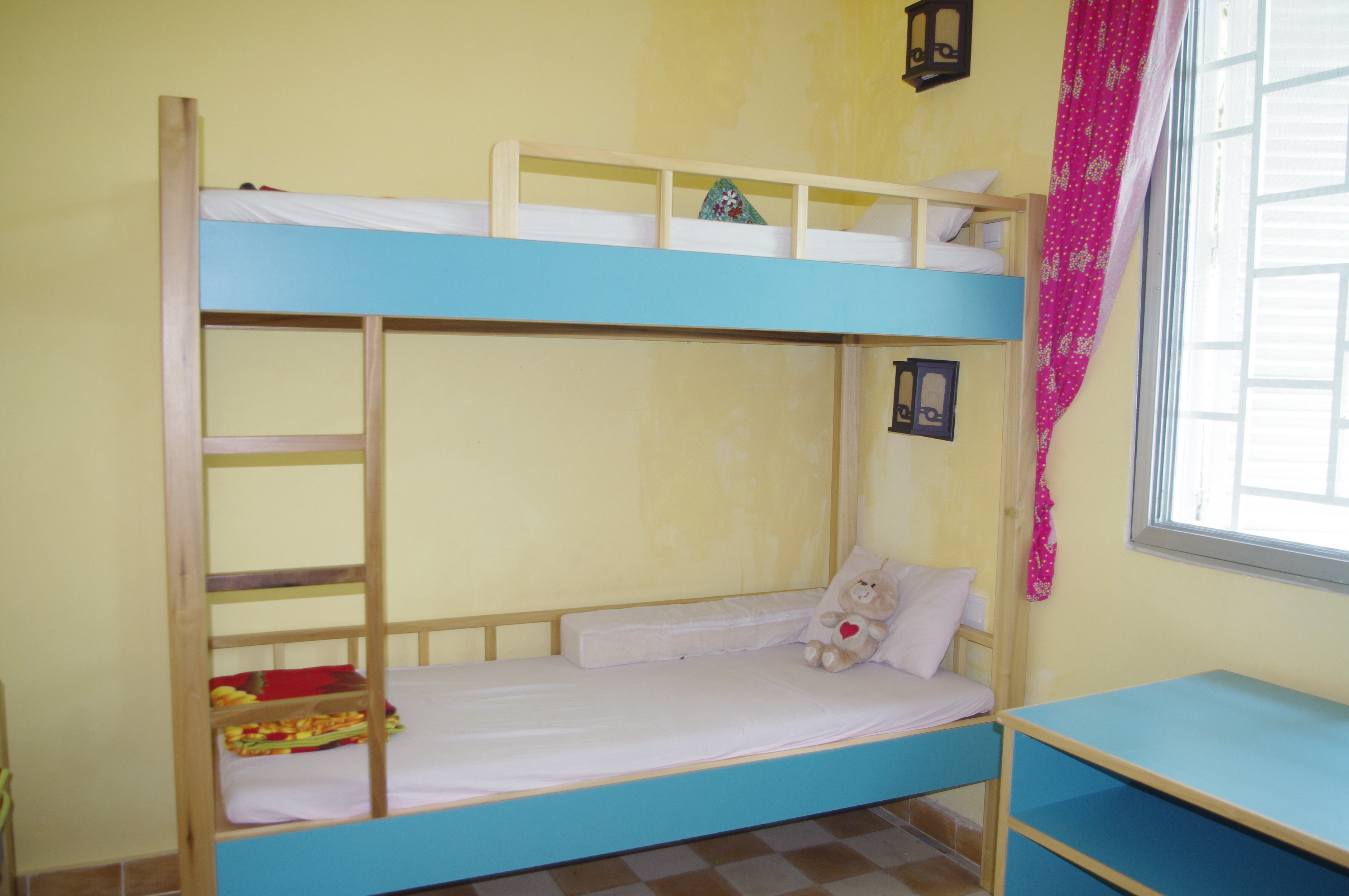 On découvre l’internat qui a été ouvert récemment ; 40 enfants y sont accueillies. Les conditions de vie chez elles sont tellement précaires que la vie scolaire en était perturbée. Leurs dortoirs sont adorables, des jolis lits et armoires Ikea, offerts par un donateur, des poupées et des oursons bien alignés sur les coussins. Peu d’habits dans les armoires. Une grande salle commune pour jouer le soir, ou coudre, ou lire…