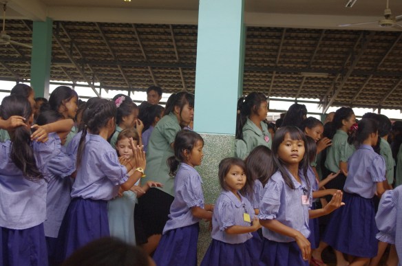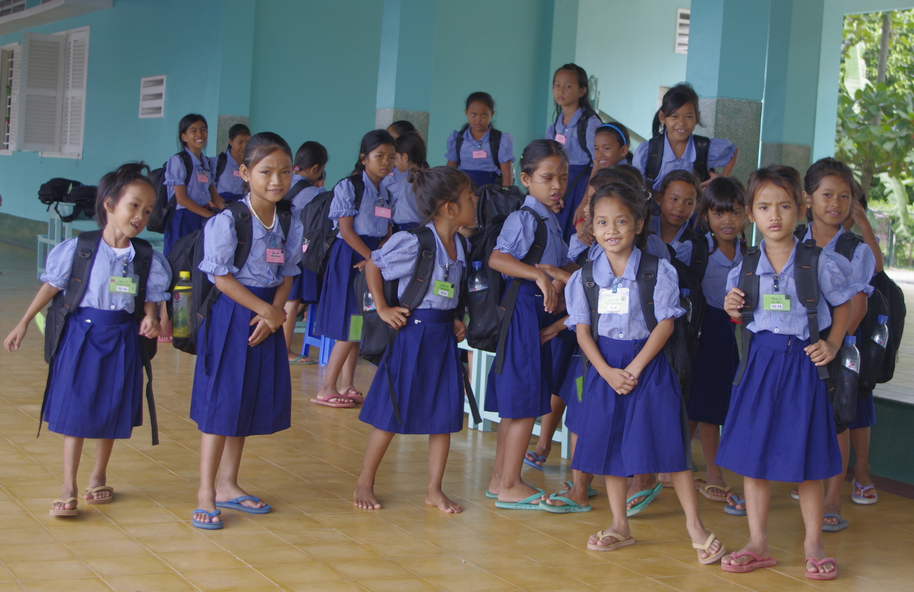 On visite les classes de khmer, d’anglais, de français, les salles d’informatique, de cuisine. Les fillettes font du sport dans la cour… elles sourient, et elles sont belles à croquer !