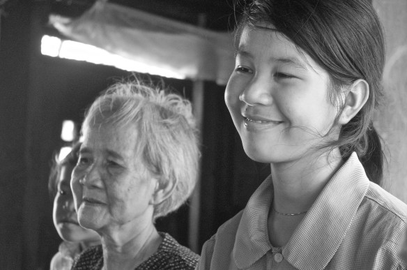 La grand-mère, la mère et la tante de Rathany nous accueillent. C’est un moment très émouvant…