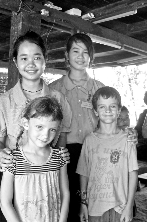 Je demande à la maman son âge ; elle est de 74 soit seulement deux ans d’écart avec moi. Forcément, je fais le parallèle et me dis qu’on est vraiment nées dans des mondes complétement différents, et que naitre en Occident est quand même une sacrée chance dans la vie… Son mari est mort il y a quelques années ; elle a fait inscrire ses filles il y a 4 ans dans l’école, se disant que c’était peut-être une vraie chance pour elles d’apprendre nettement plus qu’à l’école cambodgienne.