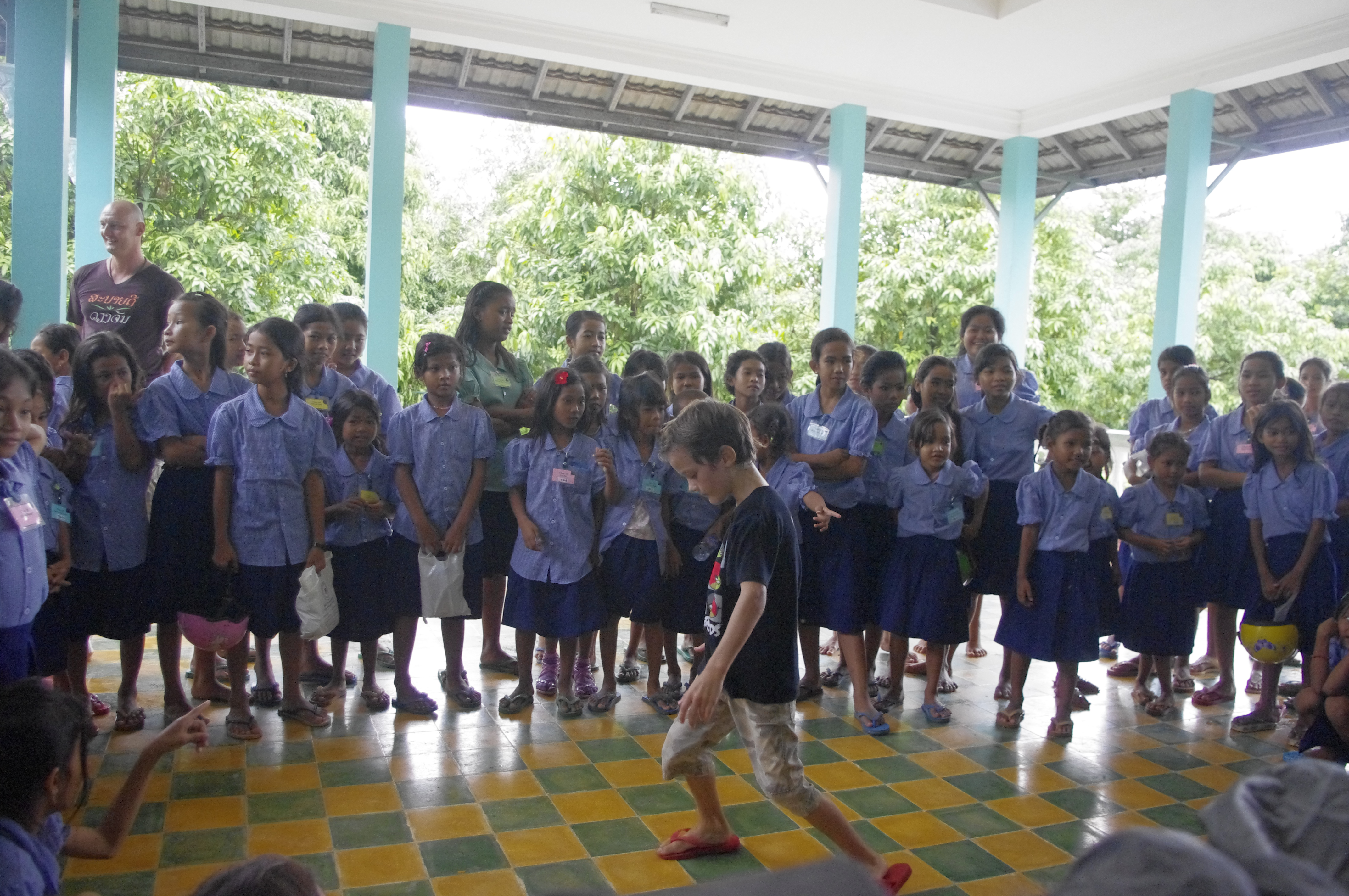 Le lendemain, nous revenons pour la fête de l’école. Rathany reçoit son diplôme de 1ère de la classe (on parraine la meilleure, c’est pas le top !), on a droit à quelques discours, des chansons et des danses traditionnelles. Hannah est subjuguée.