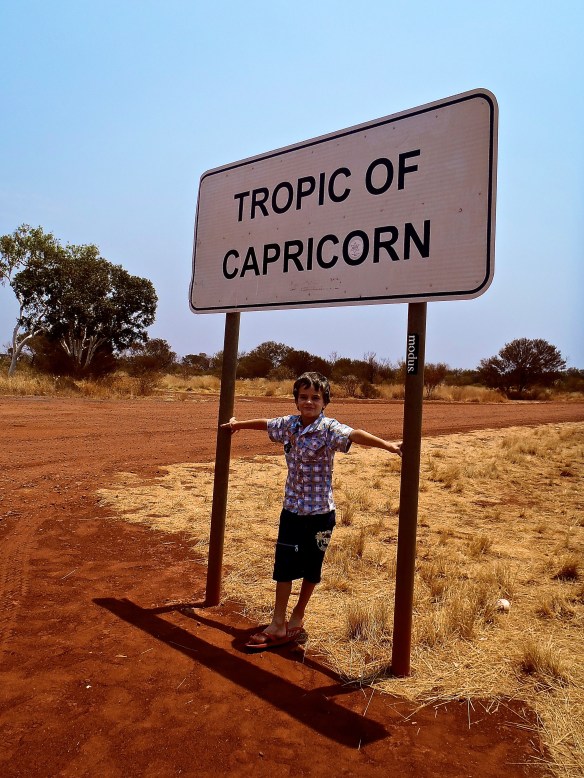 20 kilomètres avant Newman, nous passons le tropique du Capricorne pour se rapporcher de l’équateur! Sortir de la voiture est une torture, on va fondre au soleil! Mais une petite photo s’impose!