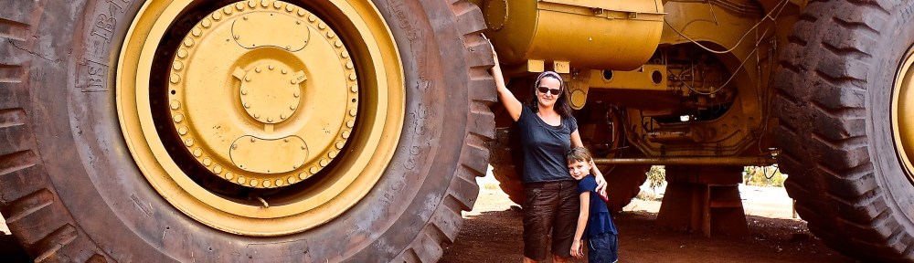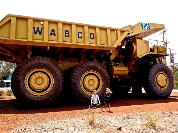 Newman est un point de base pour les exploitations des mines aux alentours, les camions sont géants, des visites sont organisées mais interdites aux moins de 6 ans, Hannah ne peut donc participer. On pose donc devant un camion, les roues sont plus grandes que Fabrice qui peut passer sous la bête sans se pencher!