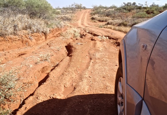 Comme dans le Karijini, l’eau n’est pas potable ; on a réinvesti à Tom Price dans un bidon de 10 litres d’eau + une trentaine de petites bouteilles, on a bien fait !