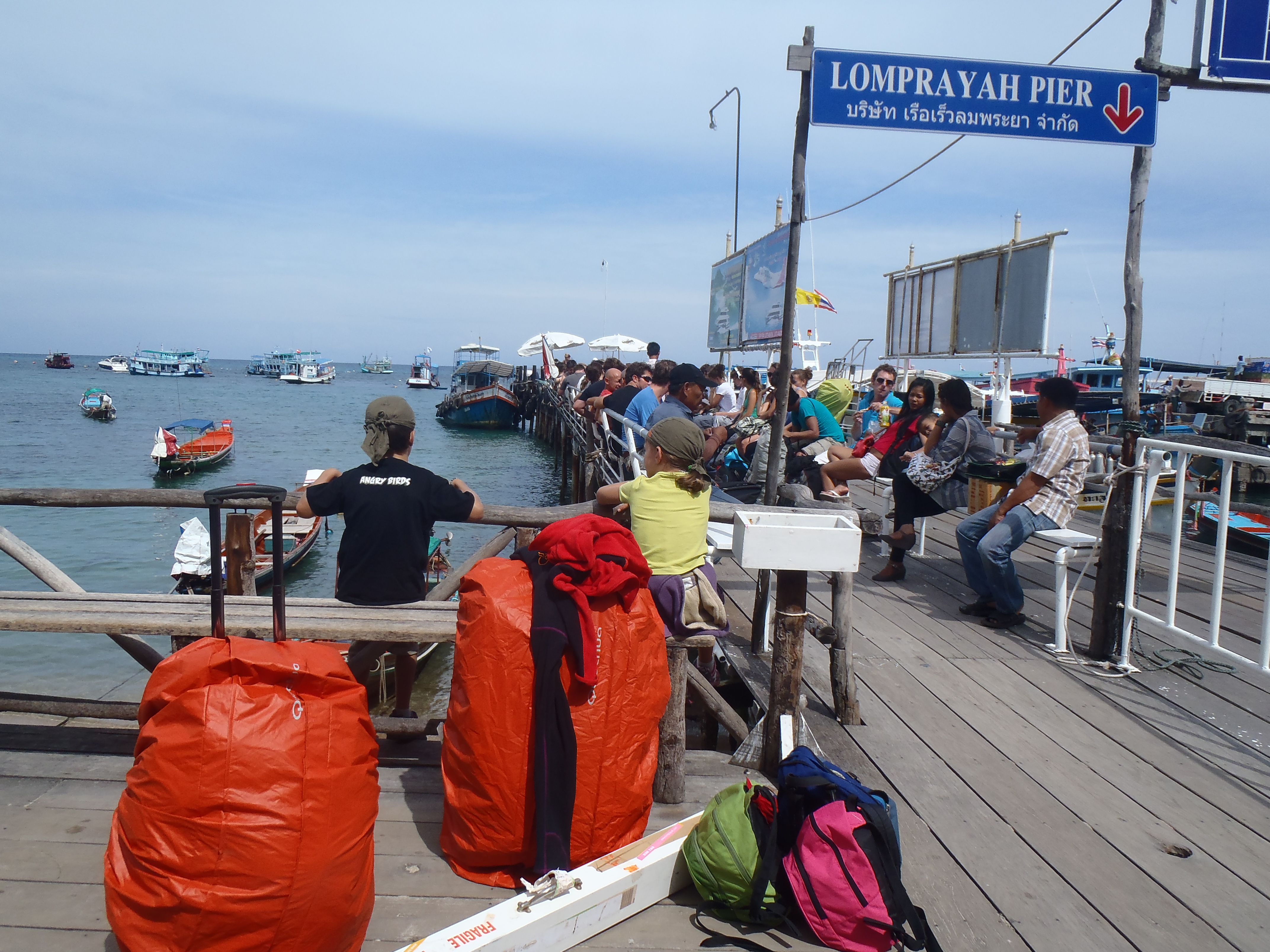 Le propriétaire de notre petite guesthouse de charme sur koh tao nous a emmené dans son 4*4, ce qui nous a permis d’admirer une dernière fois les paysages dont les touristes raffolent (mais touristes = surconsommation de bouteilles plastiques = déchets à profusion qu’une petite ile de 21kms2 a du mal à gérer) et nous avons repris le bateau pour chumporn au milieu d’une horde d’occidentaux comme nous…. De vrais petits moutons tous identifiés par une étiquette de couleur selon la destination! Il parait que certains se trompent d’île, alors on nous demande de bien vouloir être sages et de porter son badge !!!